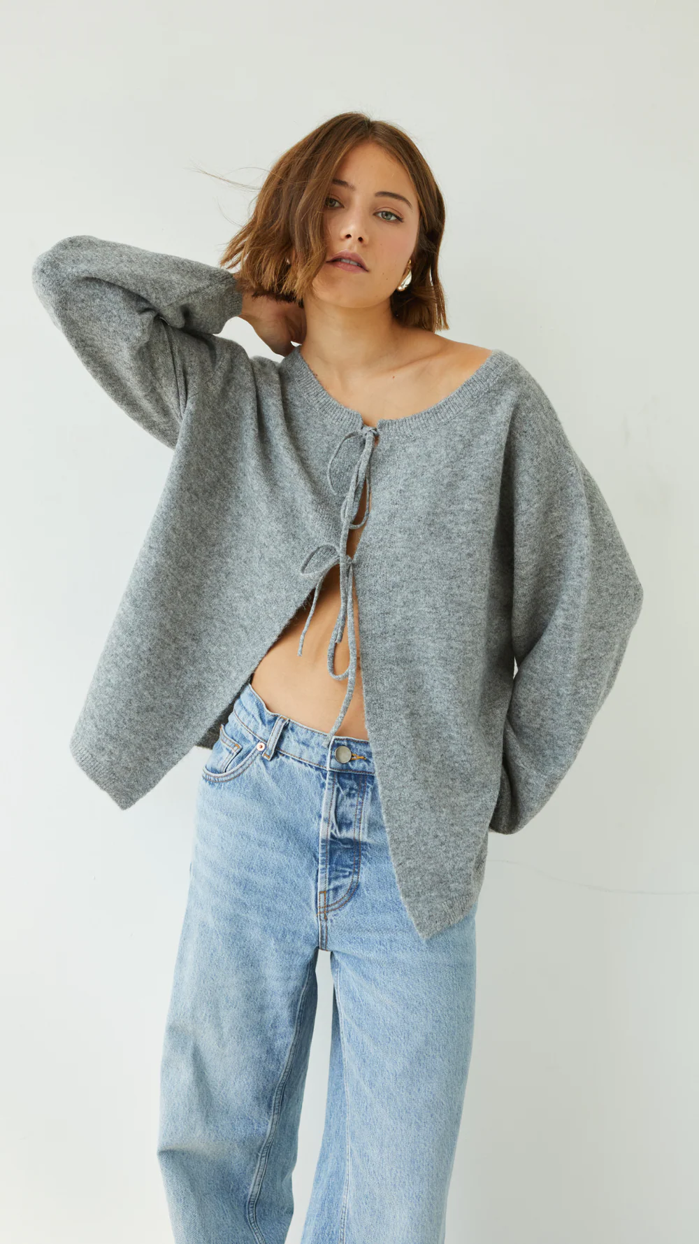 Super soft sweater with tie detailing for endless styles options. Wear with bralette, camisole vest or simple t-shirt for a modern layered look. Wear the tie detailing at the front or at the back. Wider sleeves for a contemporary luxe fit