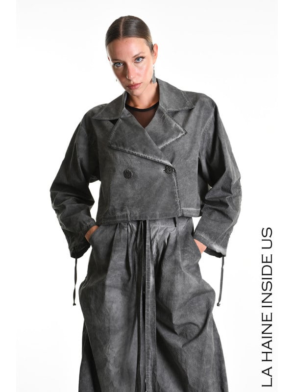 Over-crop jacket in a garment-dyed cotton gabardine.