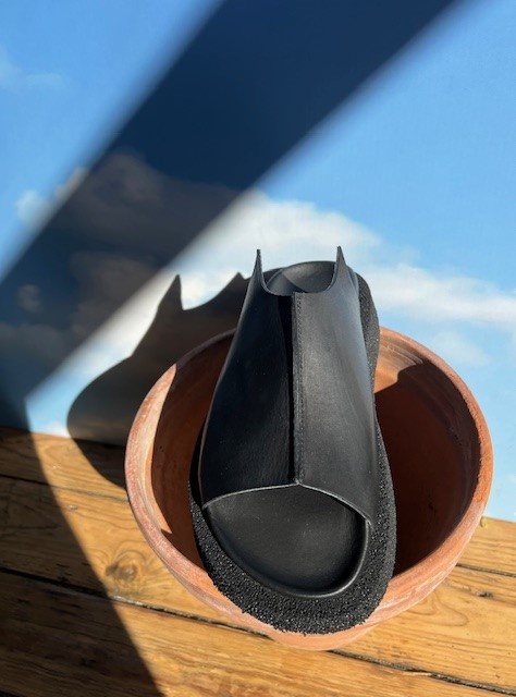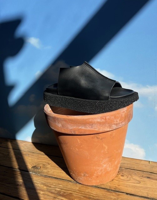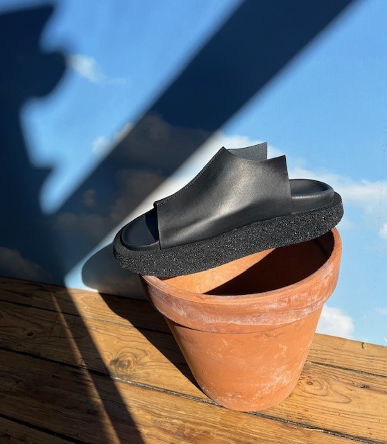 Lofina slip on leather sandal. We are loving the contemporary shape.
