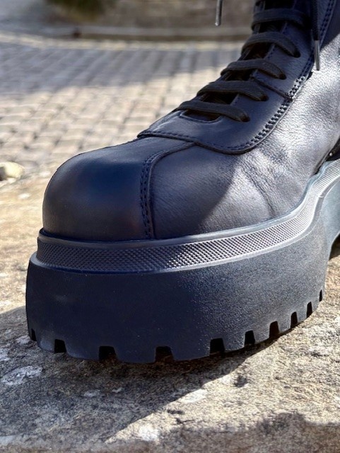Dark Navy Lofina leather boots. Front lace up fastening and side zip for easy wearing.