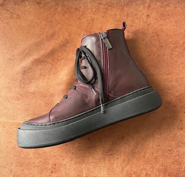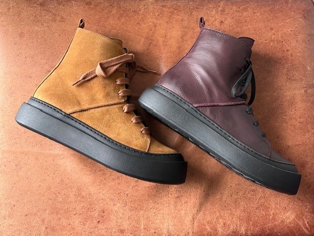 - Available in a buttery-soft tabaco coloured suede with tonal laces with metal eyelets or a smooth, full-grain burgundy premium leather with black contrasting laces.