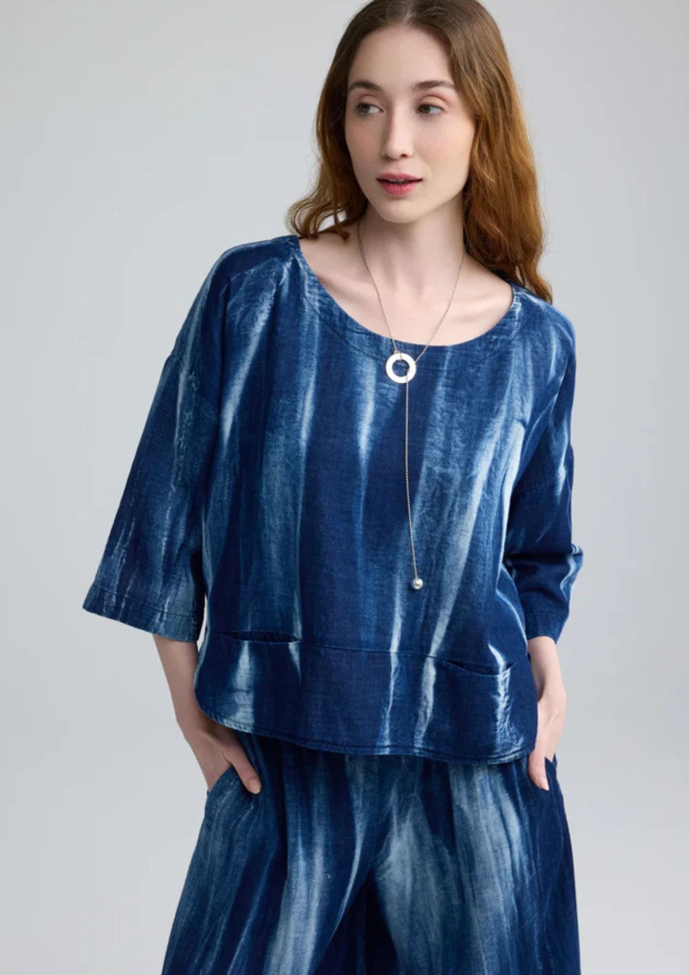 - A modern T-shape silhouette with a boxy, voluminous profile that provides a relaxed and effortless drape.