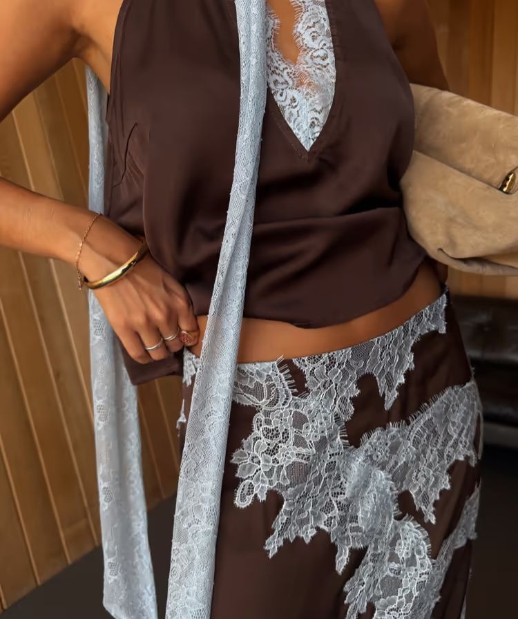 - With gorgeous lace detailing along the front and across the hem it's perfect for dressing up or down.