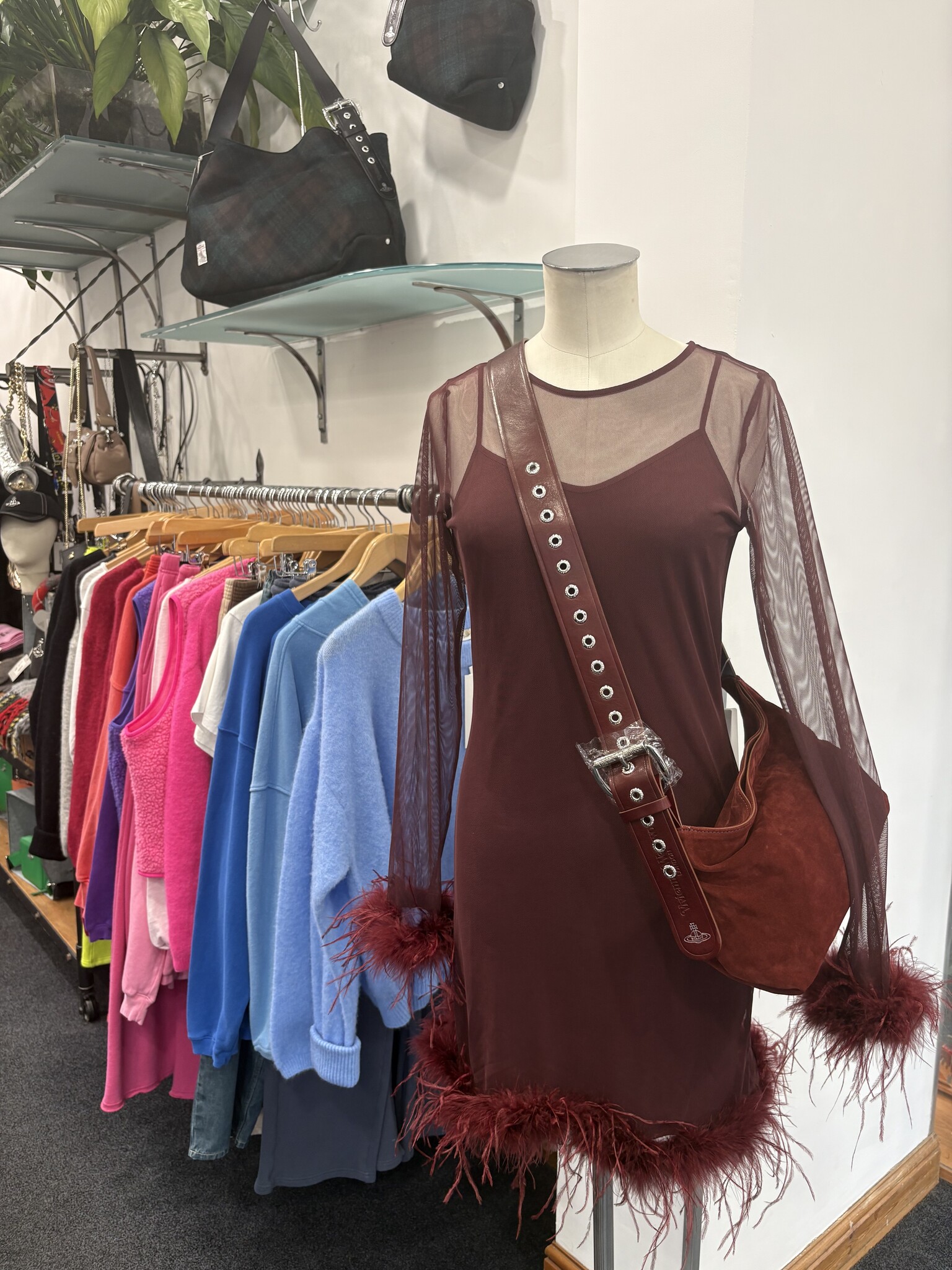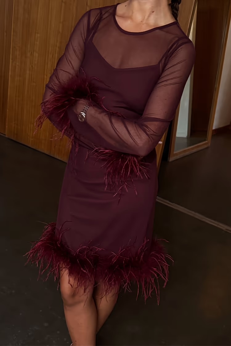 The silky soft base makes it the perfect dress to be worn throughout the seasons, and with detachable feather cuffs and hem it's a definite party piece!