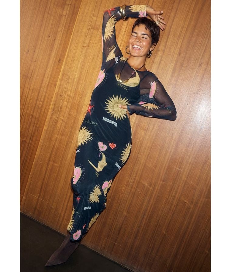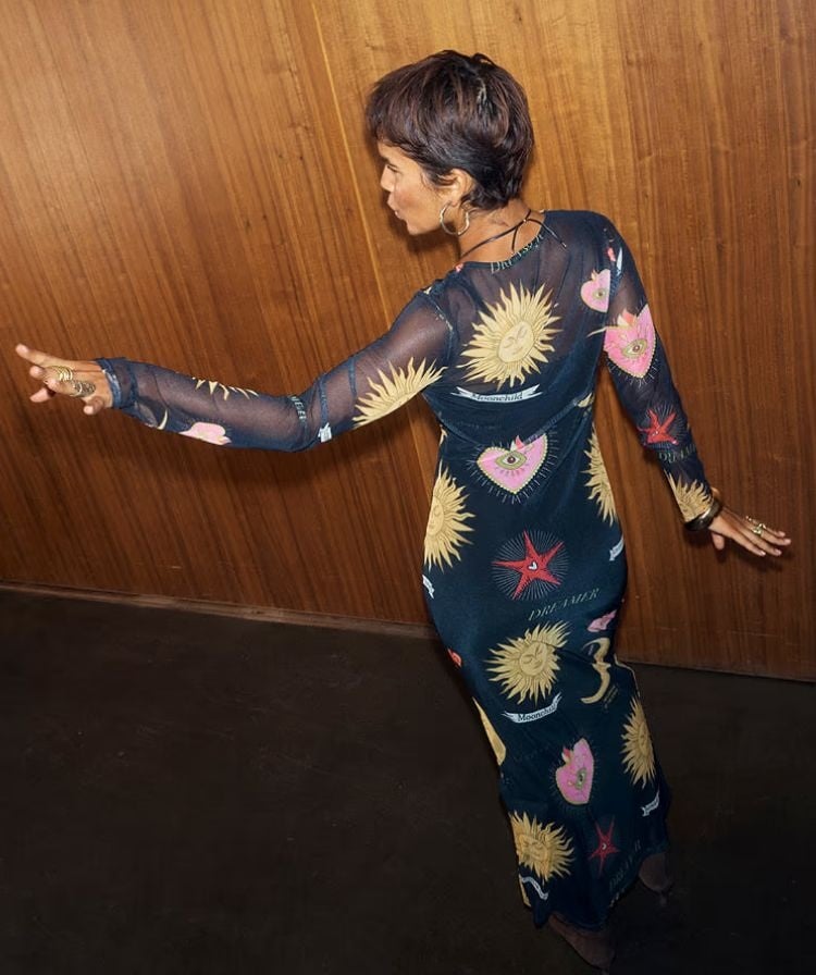 You guys loved the mystical print so of course we had to bring it back in our iconic mesh base! A feel good print with beautiful jacquard motifs, inspired by the accents of gold and silver accompanied by engravings of suns and moons.
