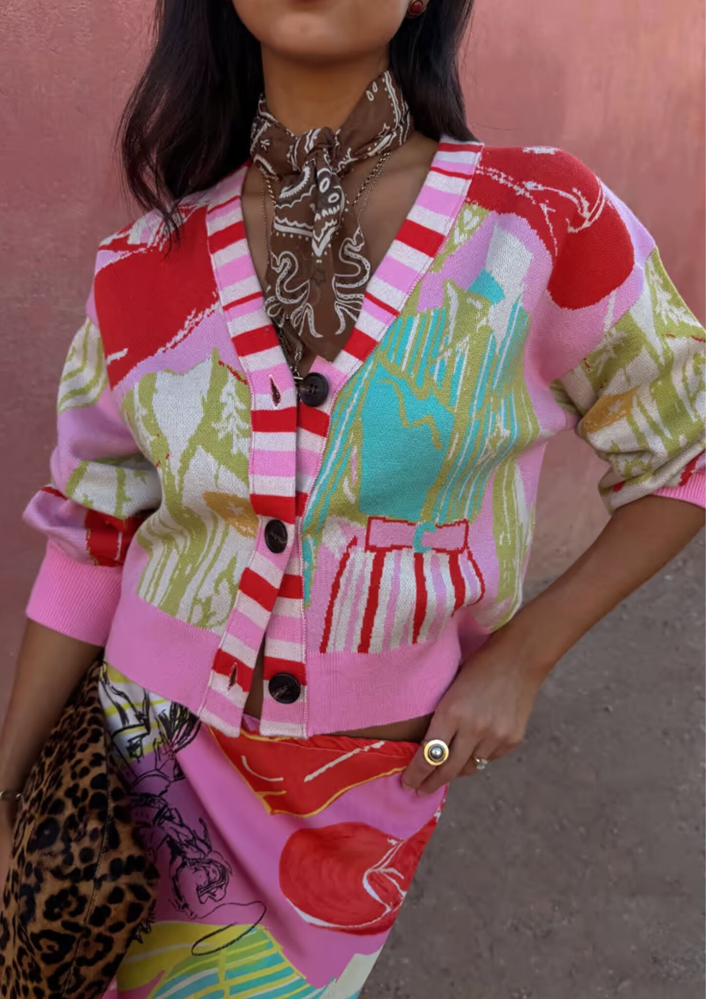 A weighty, soft touch and a definite wardrobe staple! The new dallas print range features abstract cowboy silhouettes and cowgirl motifs, create in-house by the NFD design team.