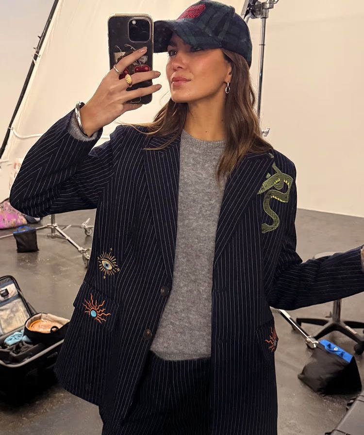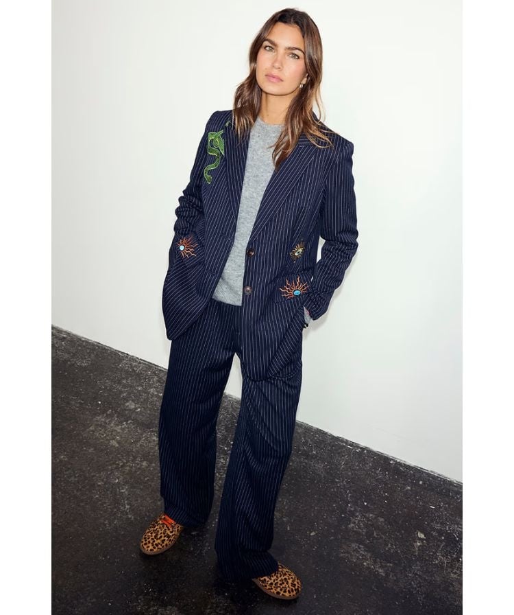 An elevated take on a wardrobe staple! In a classic pinstripe print, embellished with some of the NFD iconic motifs, and darts along the sides for a more fitted silhouette.