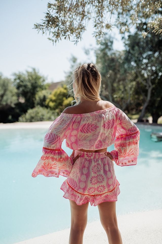 - Shorts with elastic waistband and adjustable drawstring with tassels