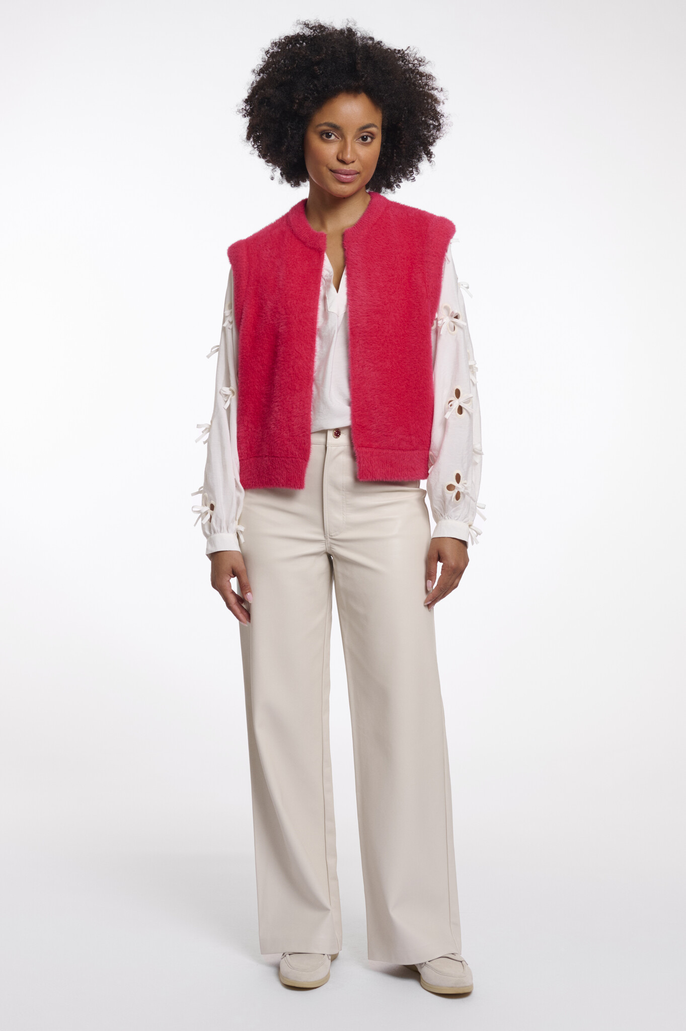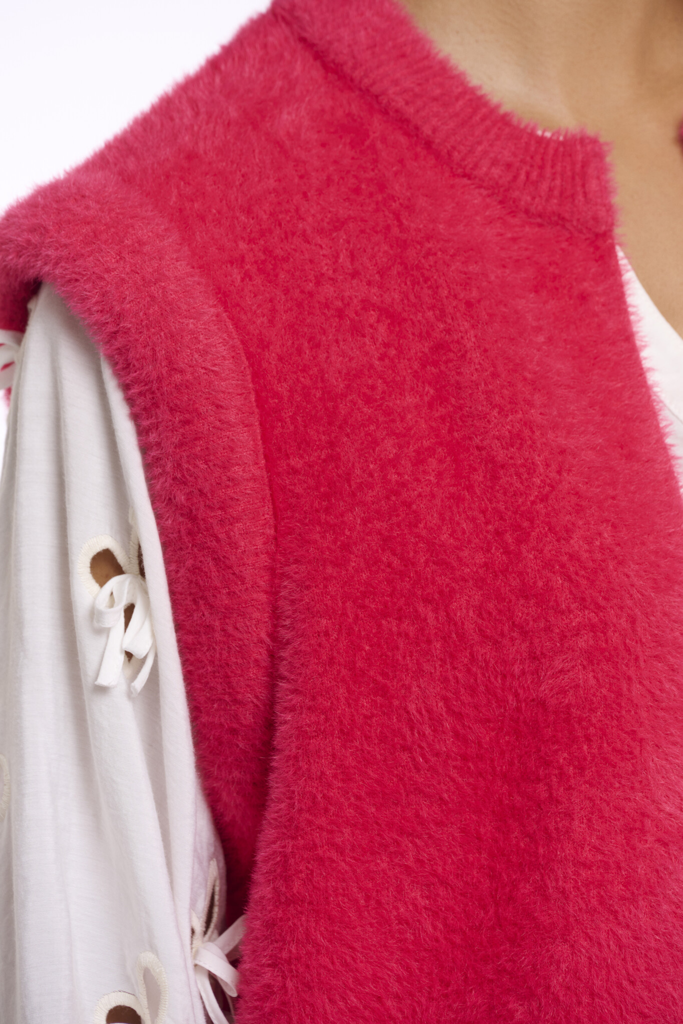 Super cosy knitted waistcoat. This soft design features ribbed details at the collar, armpit and bottom. An essential piece for a contemporary look.