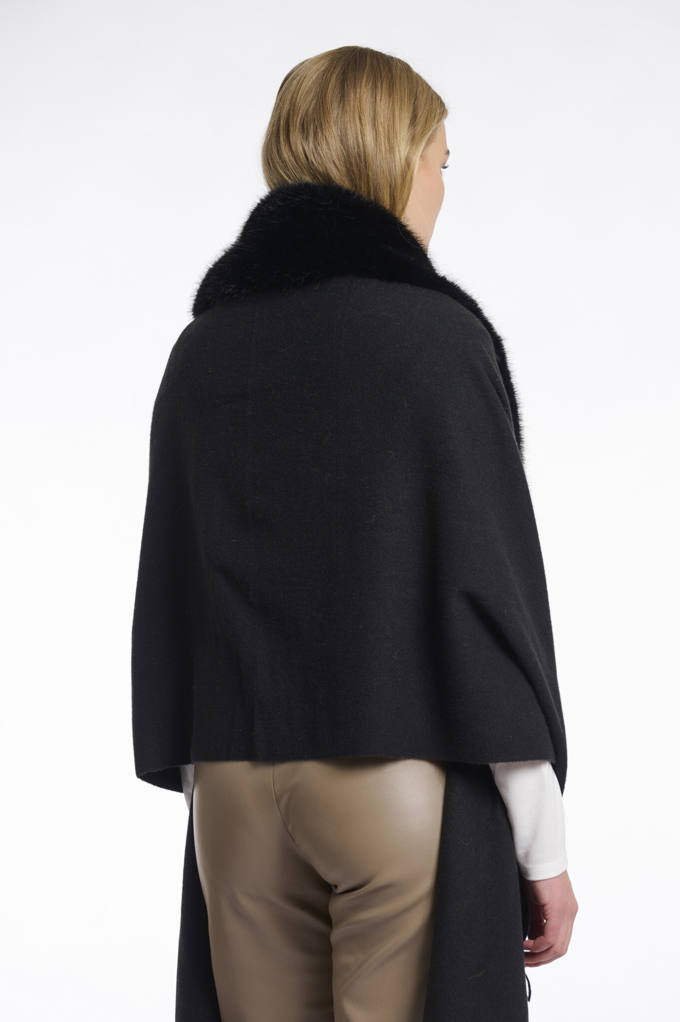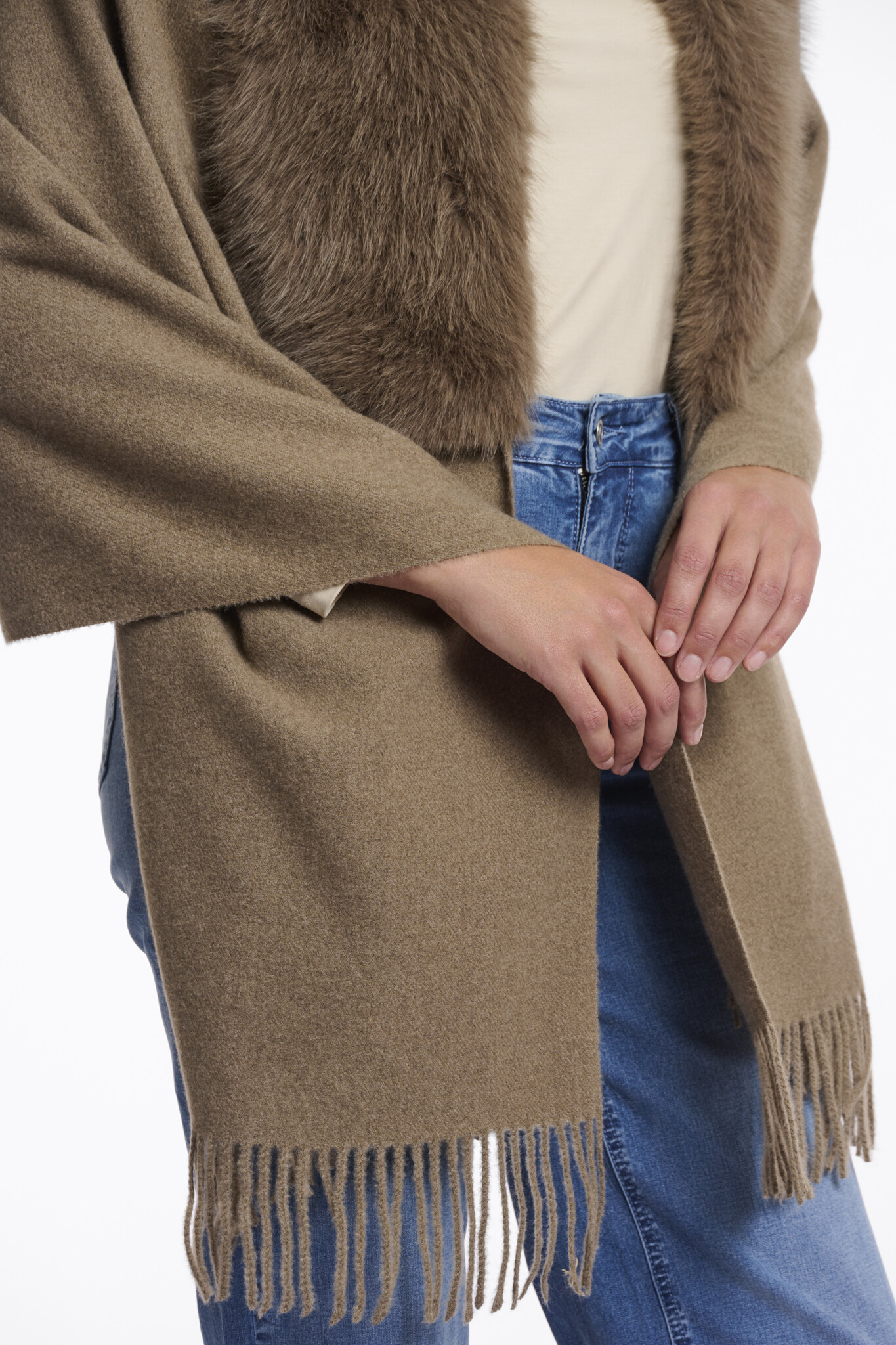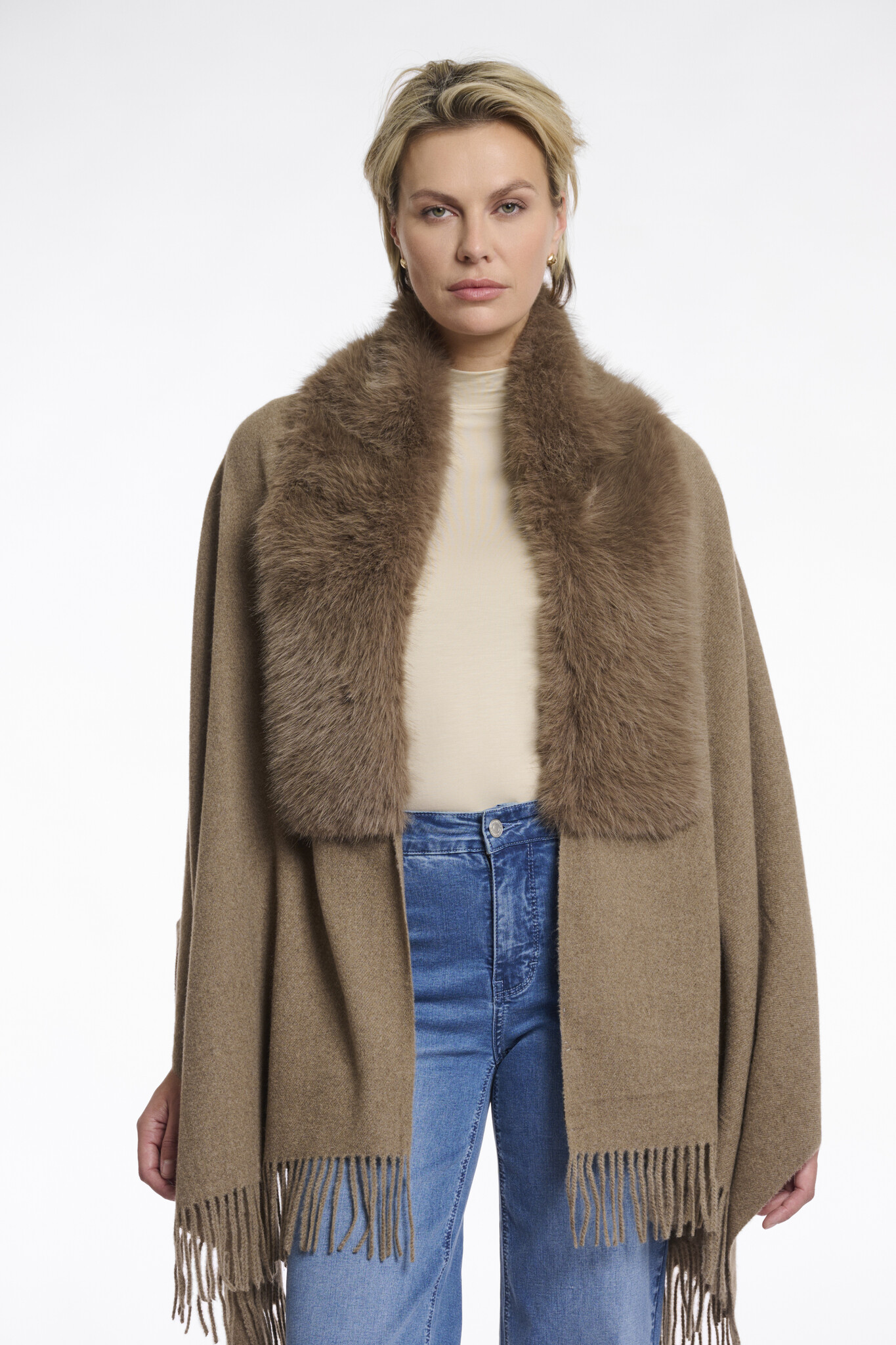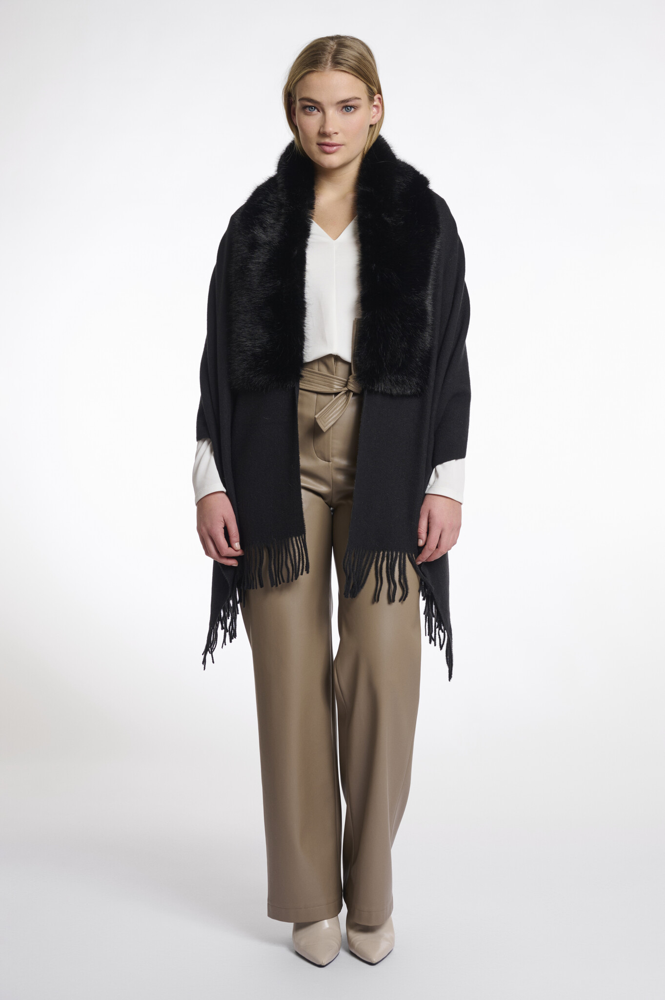 Create a soft, flowing silhouette that drapes effortlessly, keeping you warm and stylish. This poncho with its luxurious faux-fur collar and playful fringe detailing you'll add a touch of glamour to any look.