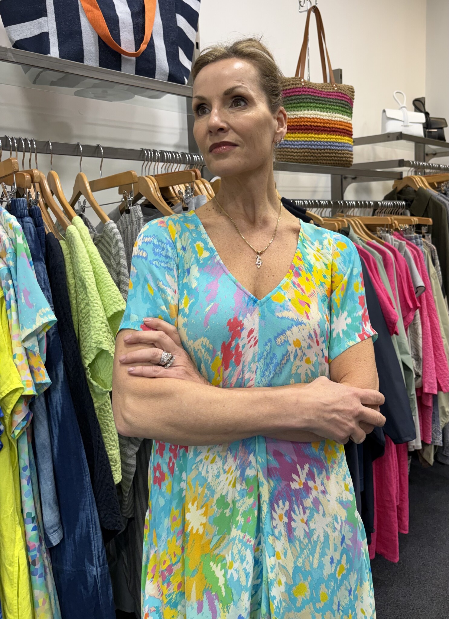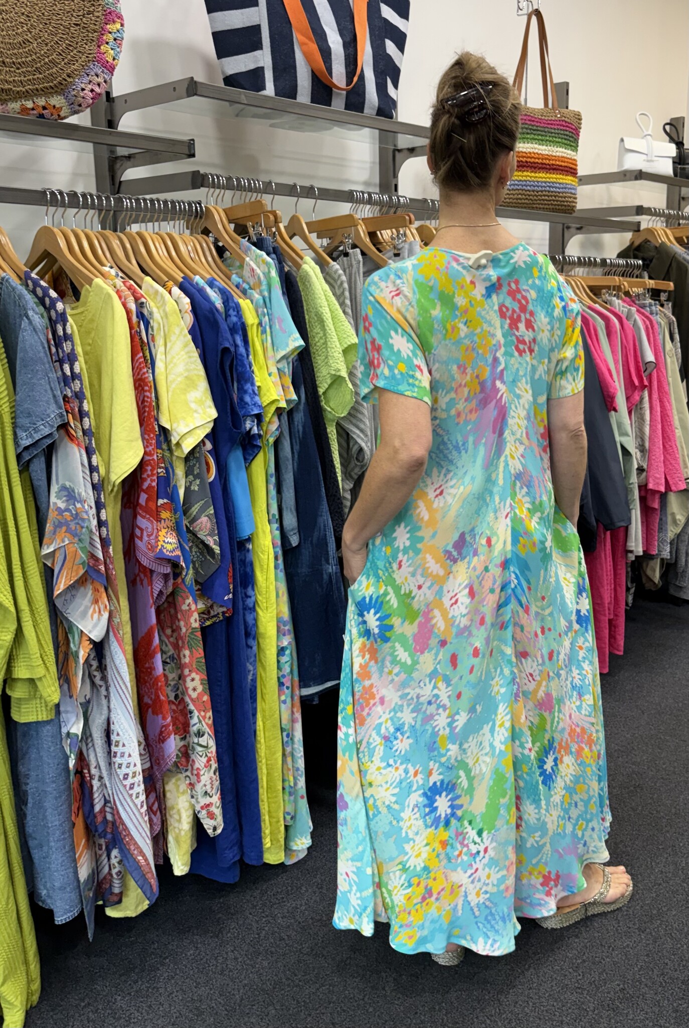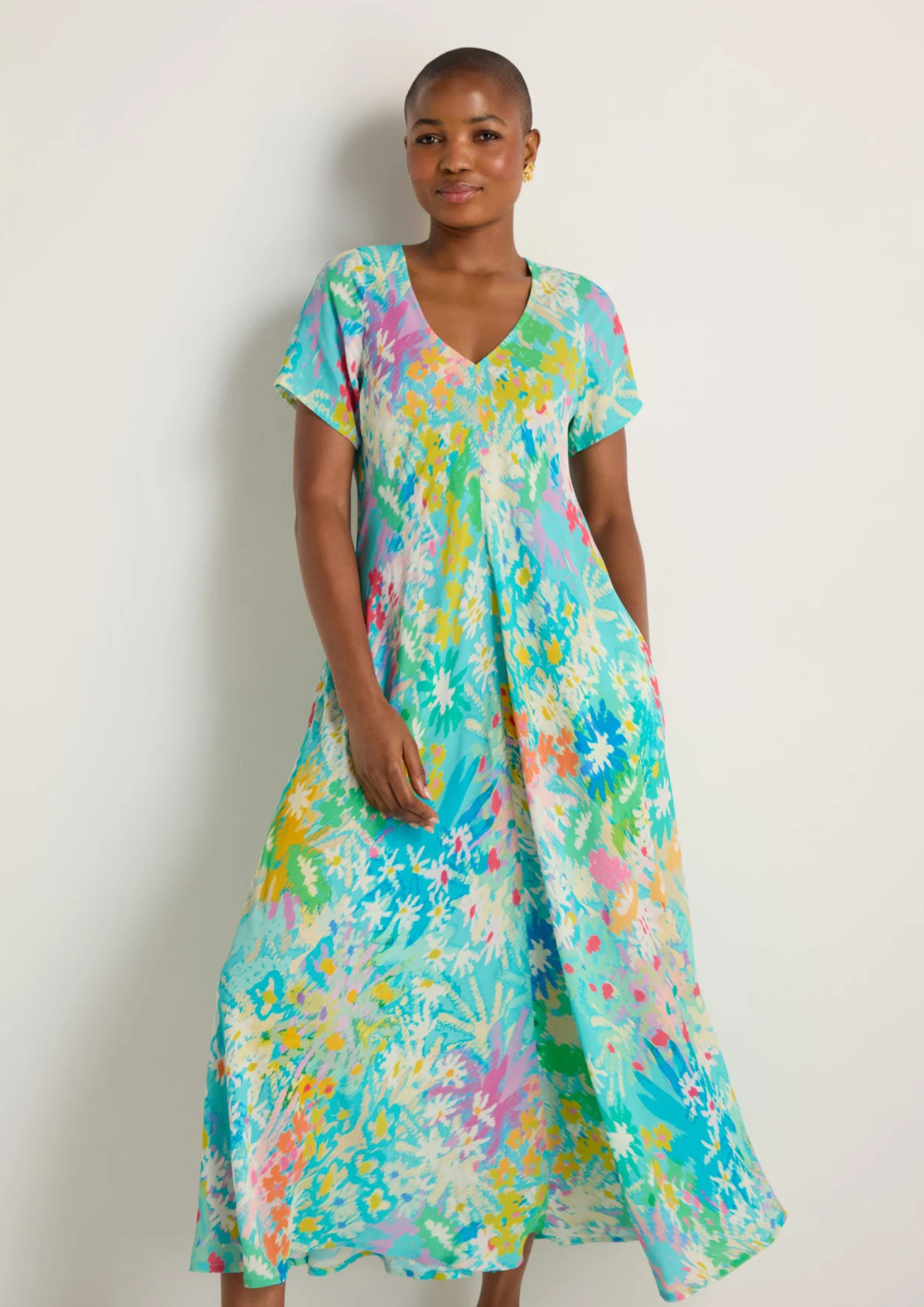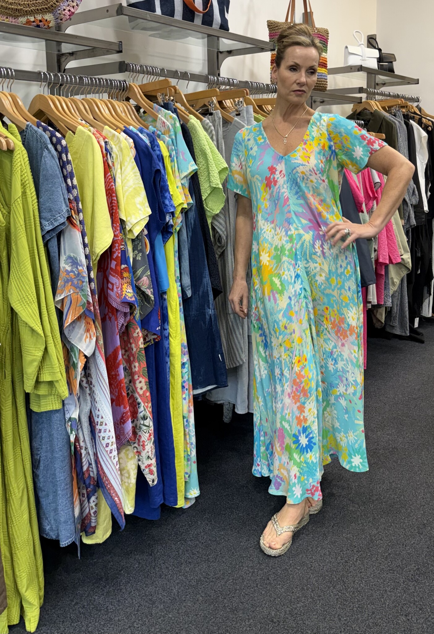 The Sahara Floral Oasis Maxi Dress is cut in a luxe viscose crepe that feels cool, soft and almost silk-like against the skin, bringing the colour of the print to life with every movement.