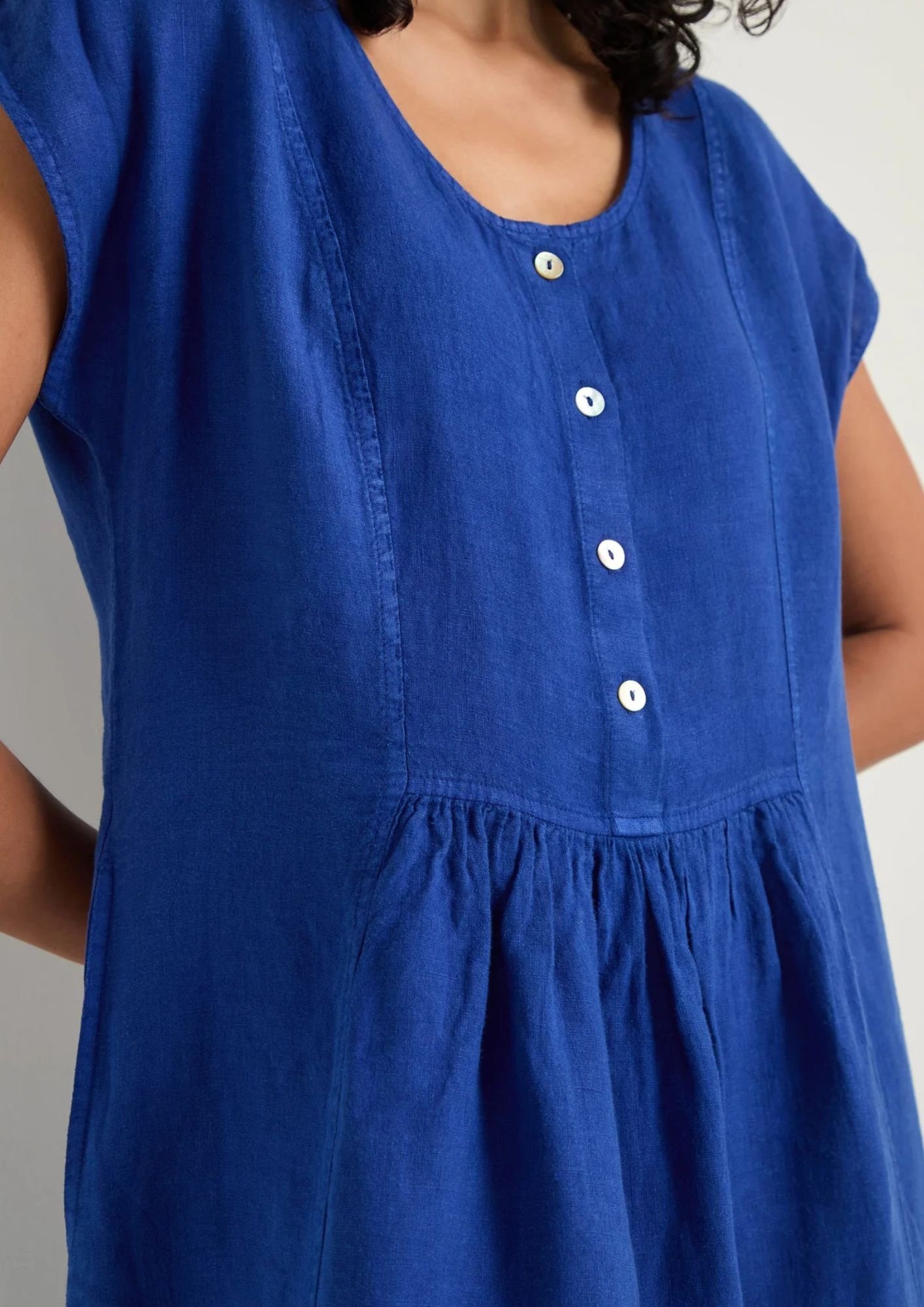 The Sahara Linen Button Placket Dress captures everything we love about warm-weather linen. Cut from pure linen with a softly gathered front waist, the silhouette falls into an easy fit and flare shape that moves beautifully with every step.