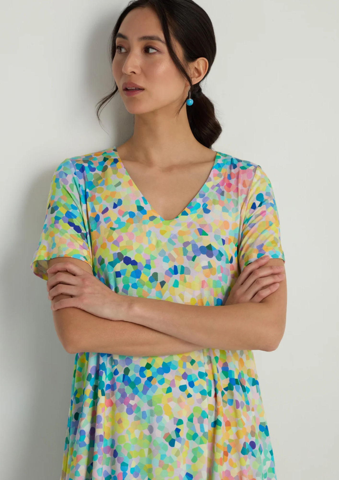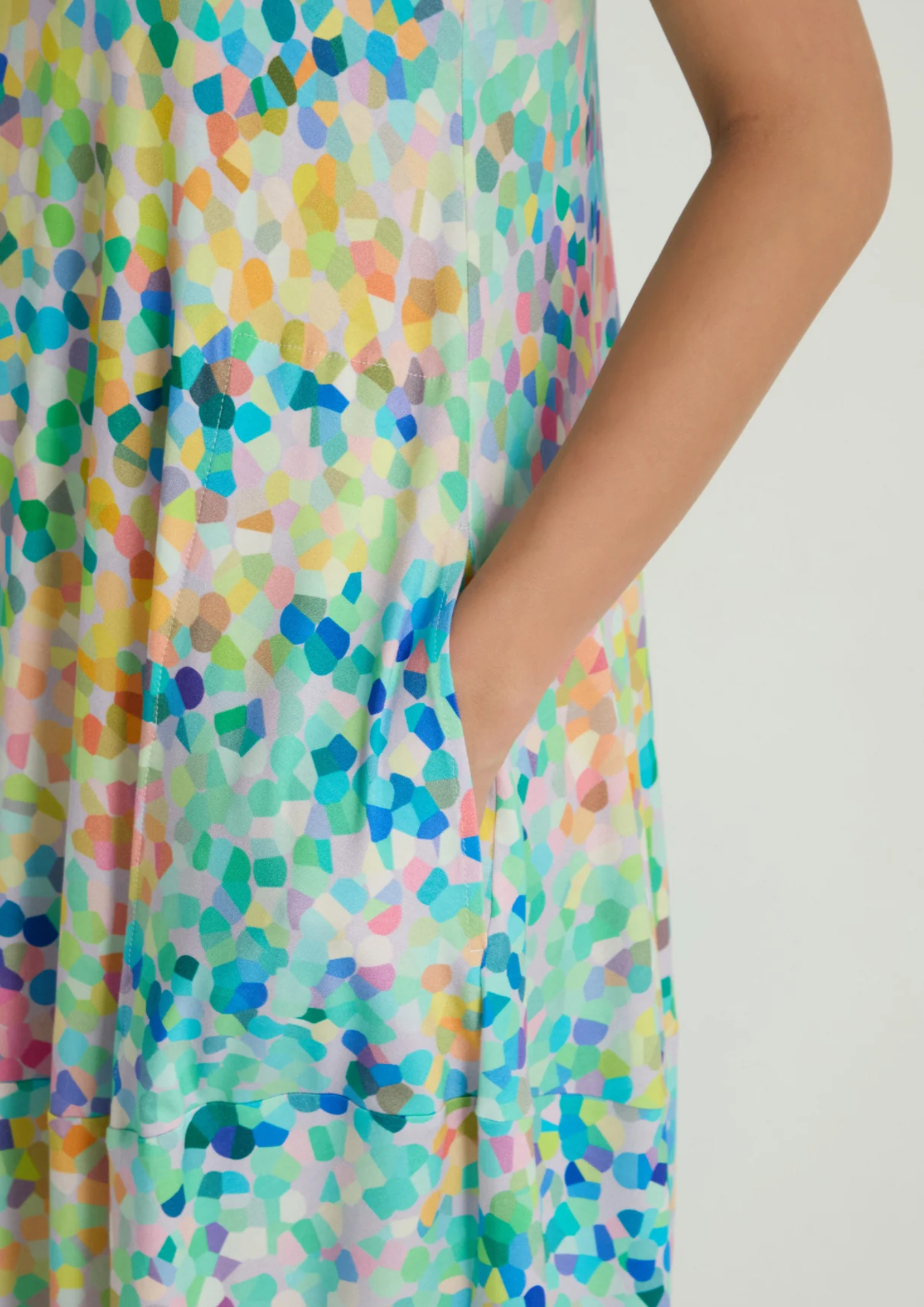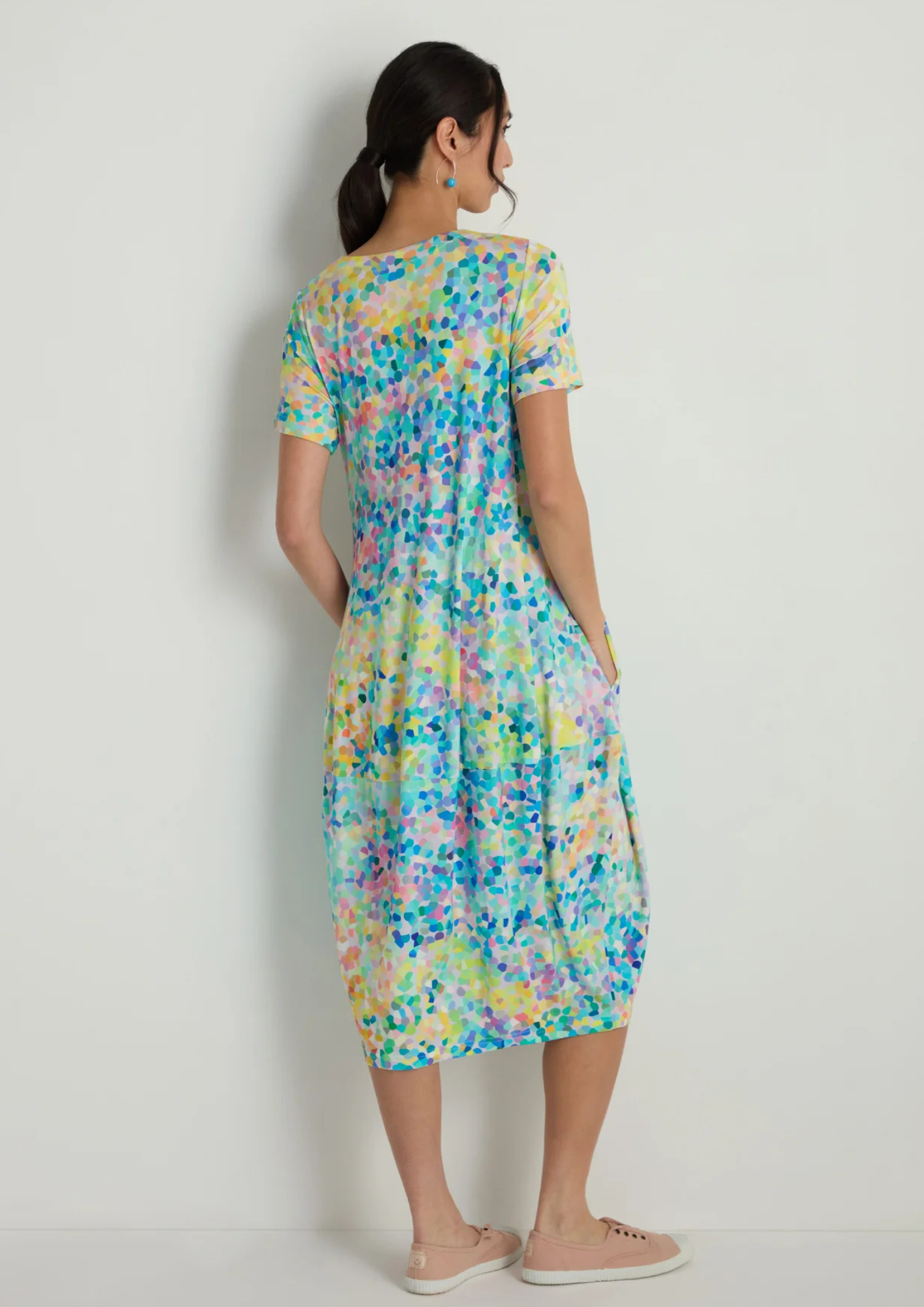 The Sahara Summer Confetti Jersey Bubble Dress pairs expressive, playful print with a soft and flowing silhouette, crafted in fluid jersey for effortless movement. The bubble shape adds volume while maintaining a relaxed, wearable feel.