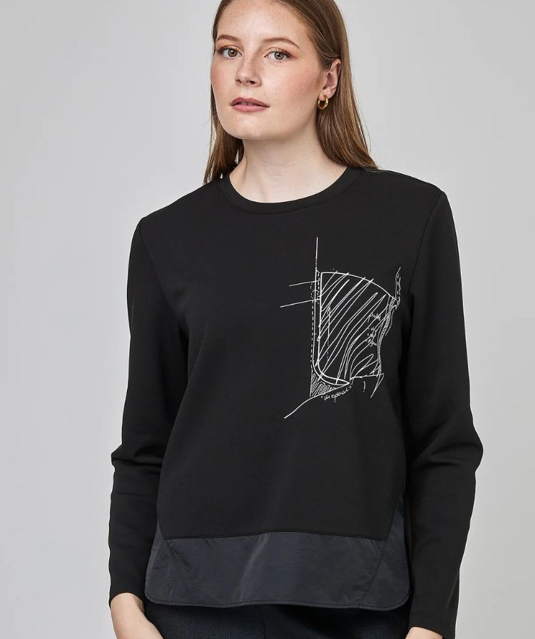 Comfortable and stylish long-sleeved top with a printed pattern that adds a graphic and trendy touch. Ideal for wearing alone or layered to vary your everyday looks.