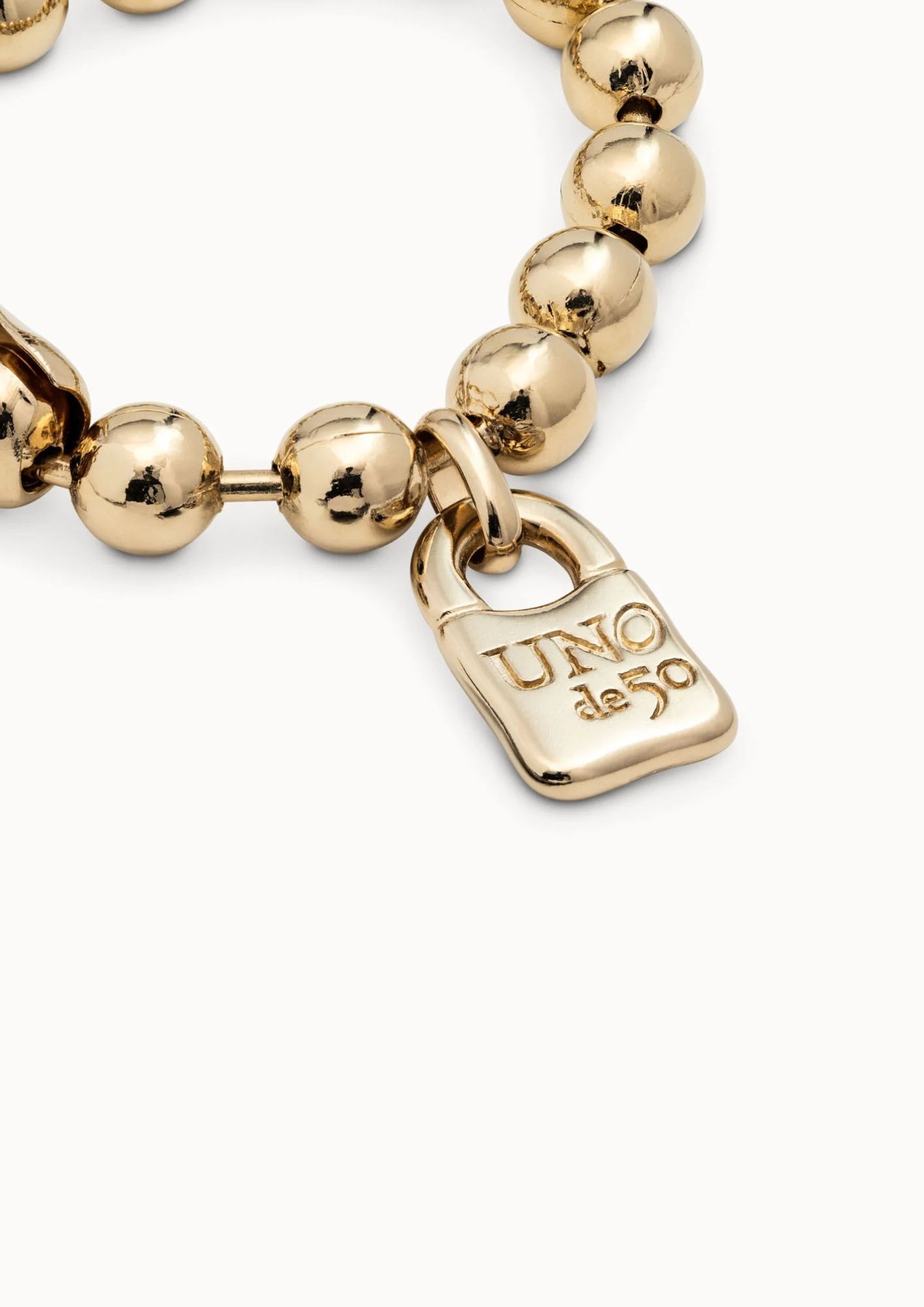 Original unisex bracelet made of multiple pieces with silver-plated balls that end with a connector. It includes the classic padlock of the brand as a charm. A unique jewel designed by UNOde50 and made in Spain under a 100% handcrafted process.