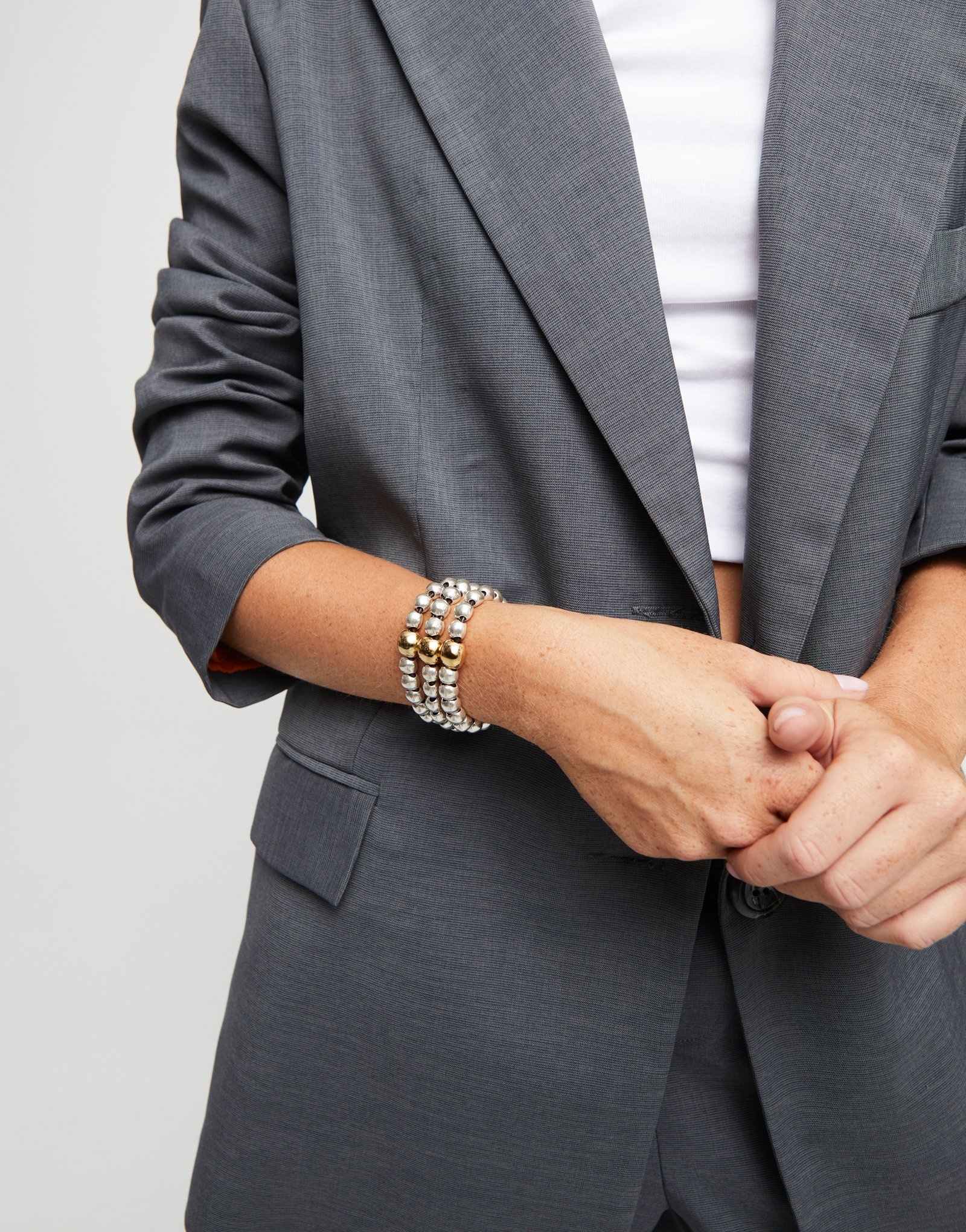 Three strand bead sterling silver-plated bracelet and 18k gold-plated bead.