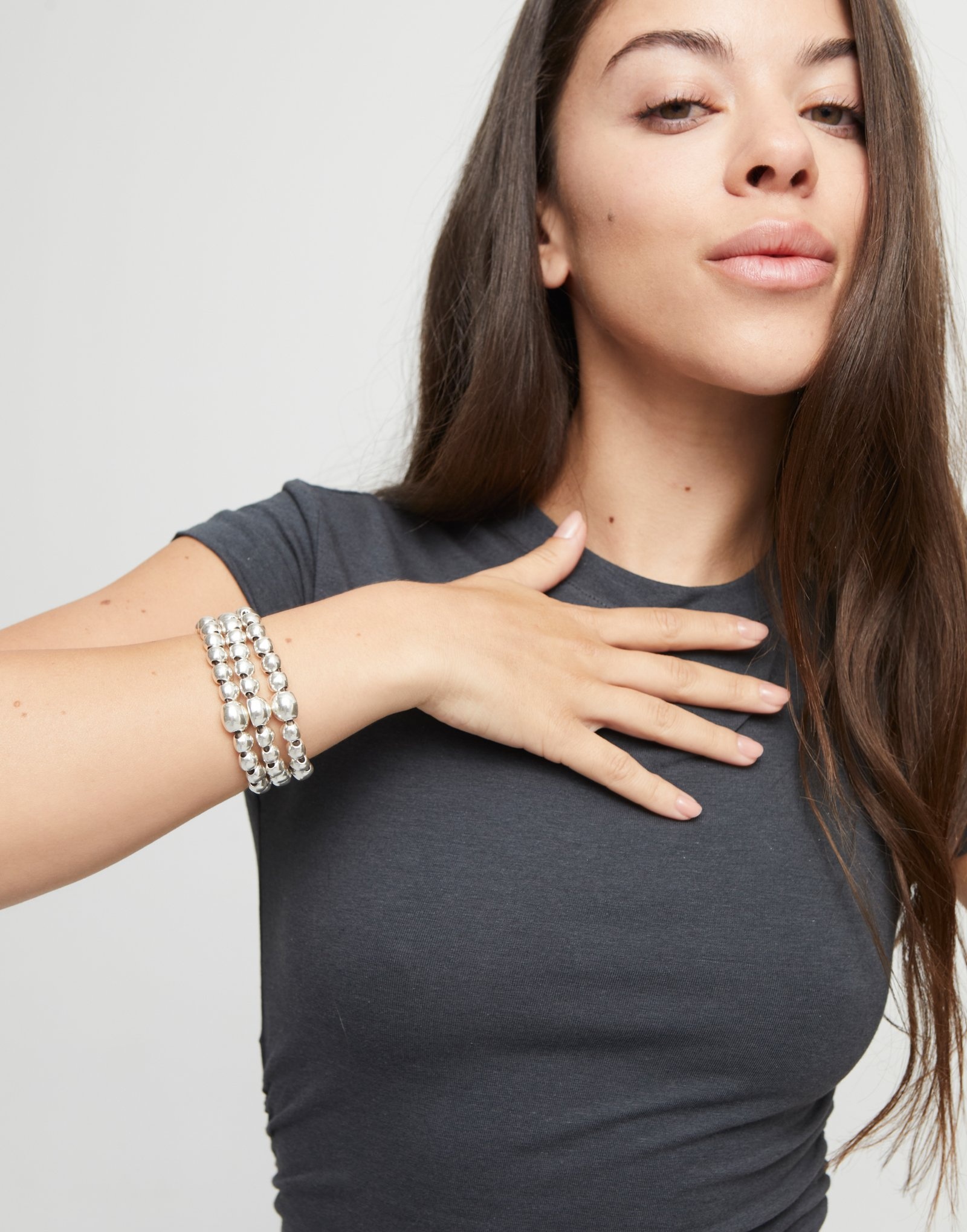 Uno De 50 PUL2550MTL Three Strand Beaded Leather Bracelet