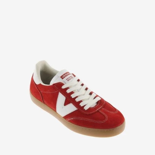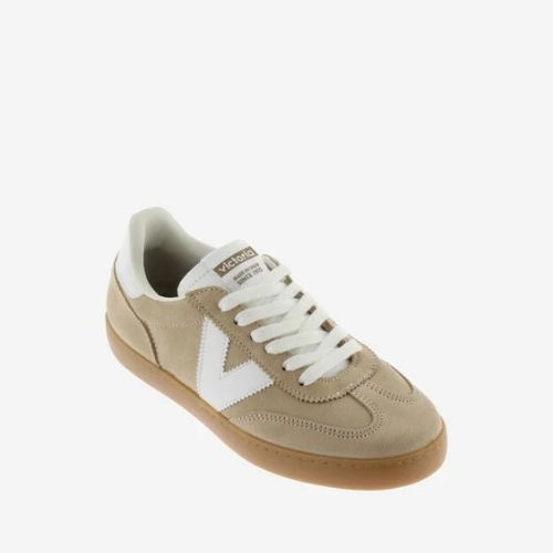 Unisex trainers made in Spain from multicoloured suede. Contrasting white side Victoria "V" and heel panel. White lace-up fastening and contrast stitching. Translucent caramel-coloured T.R. sole.