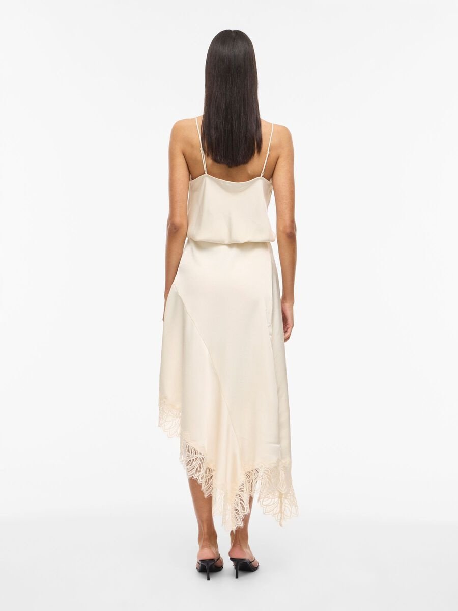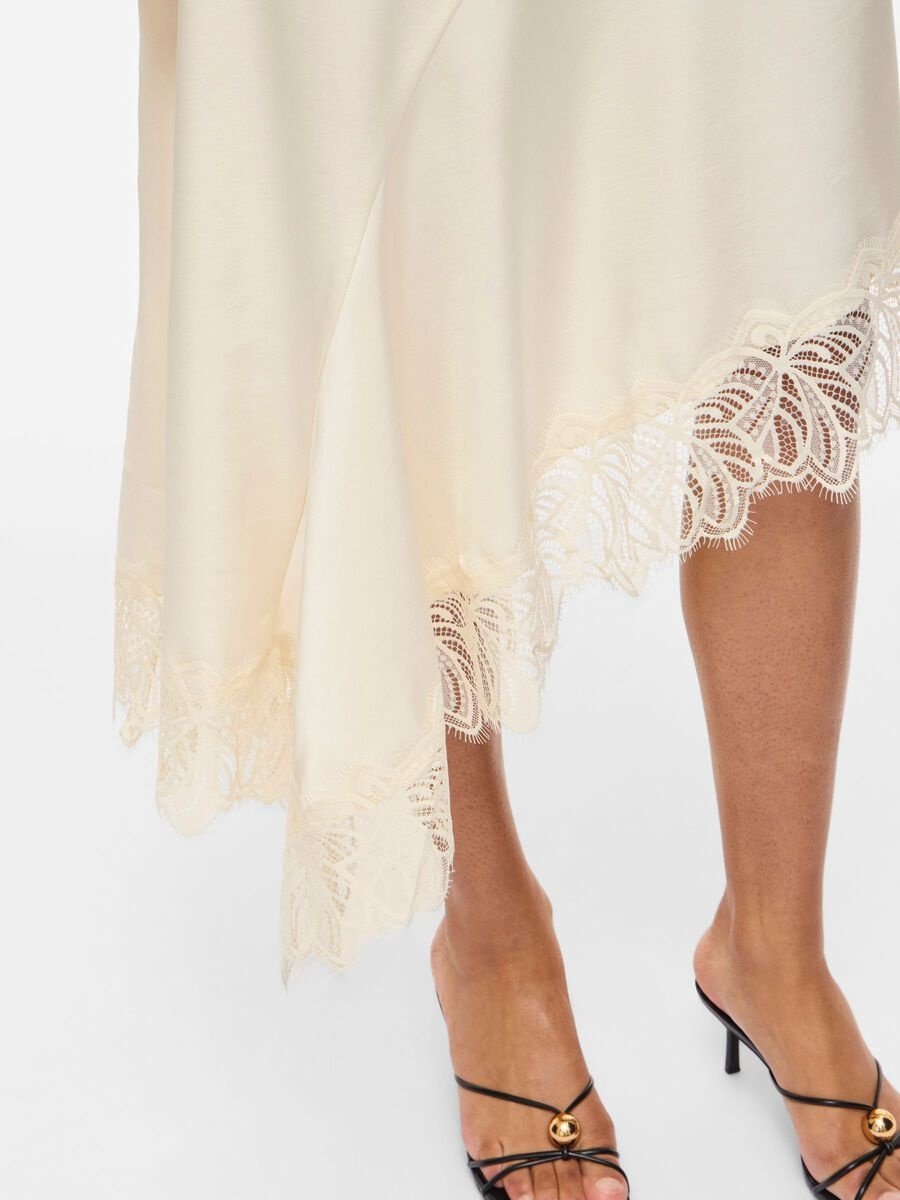 Asymmetric midi skirt with lace trim. matching camisole available.
