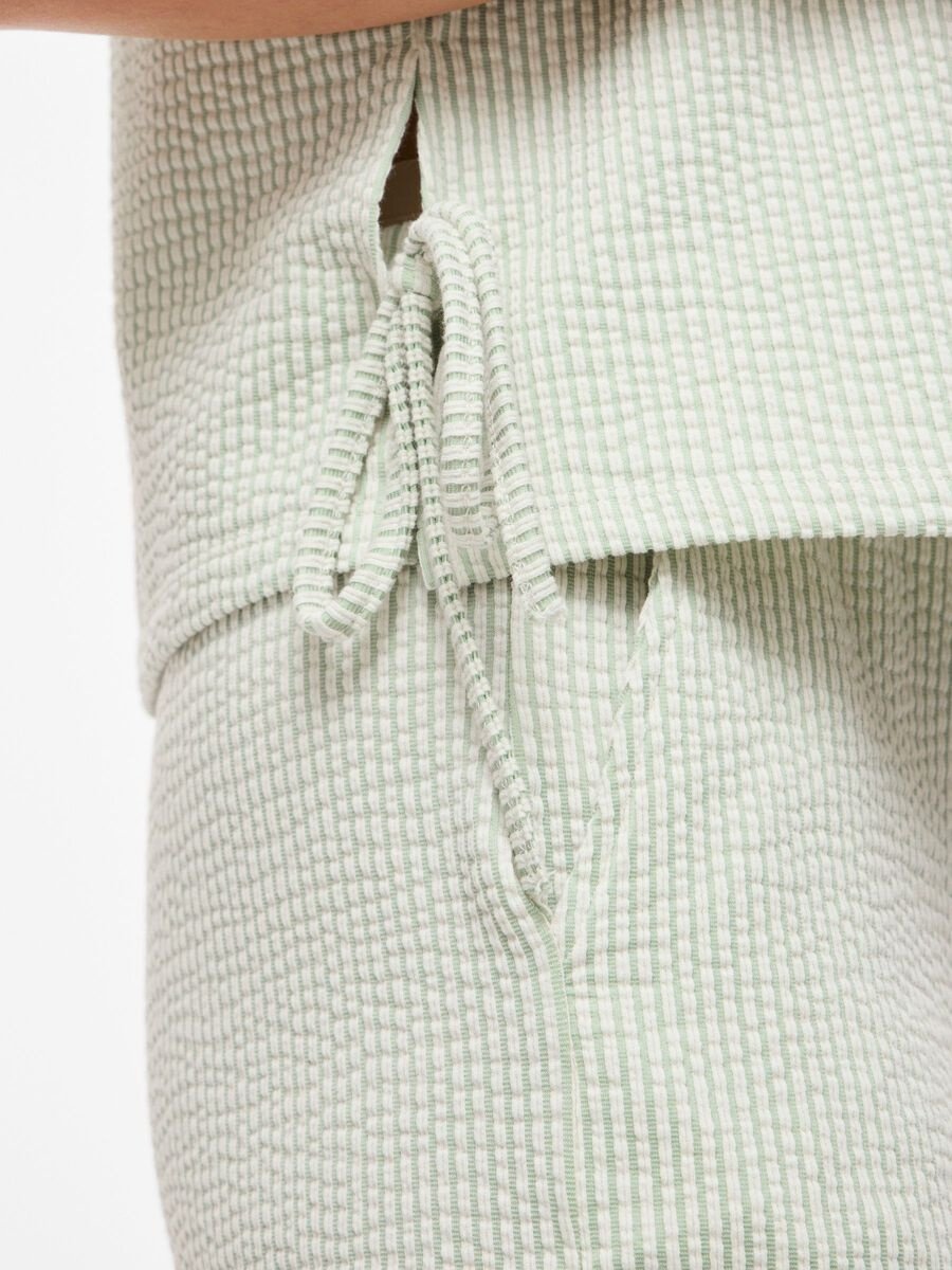 Sleeveless top with fine pinstripe and matching pants available.