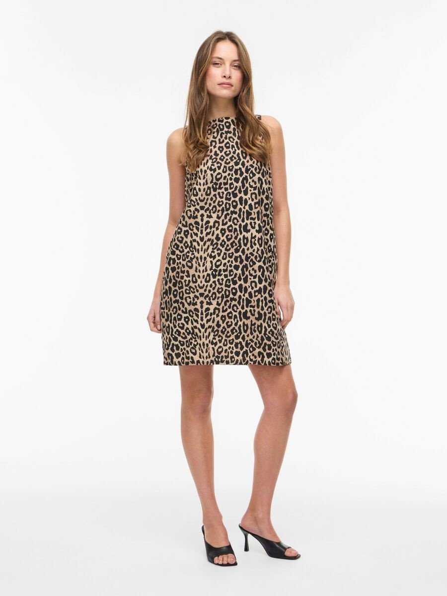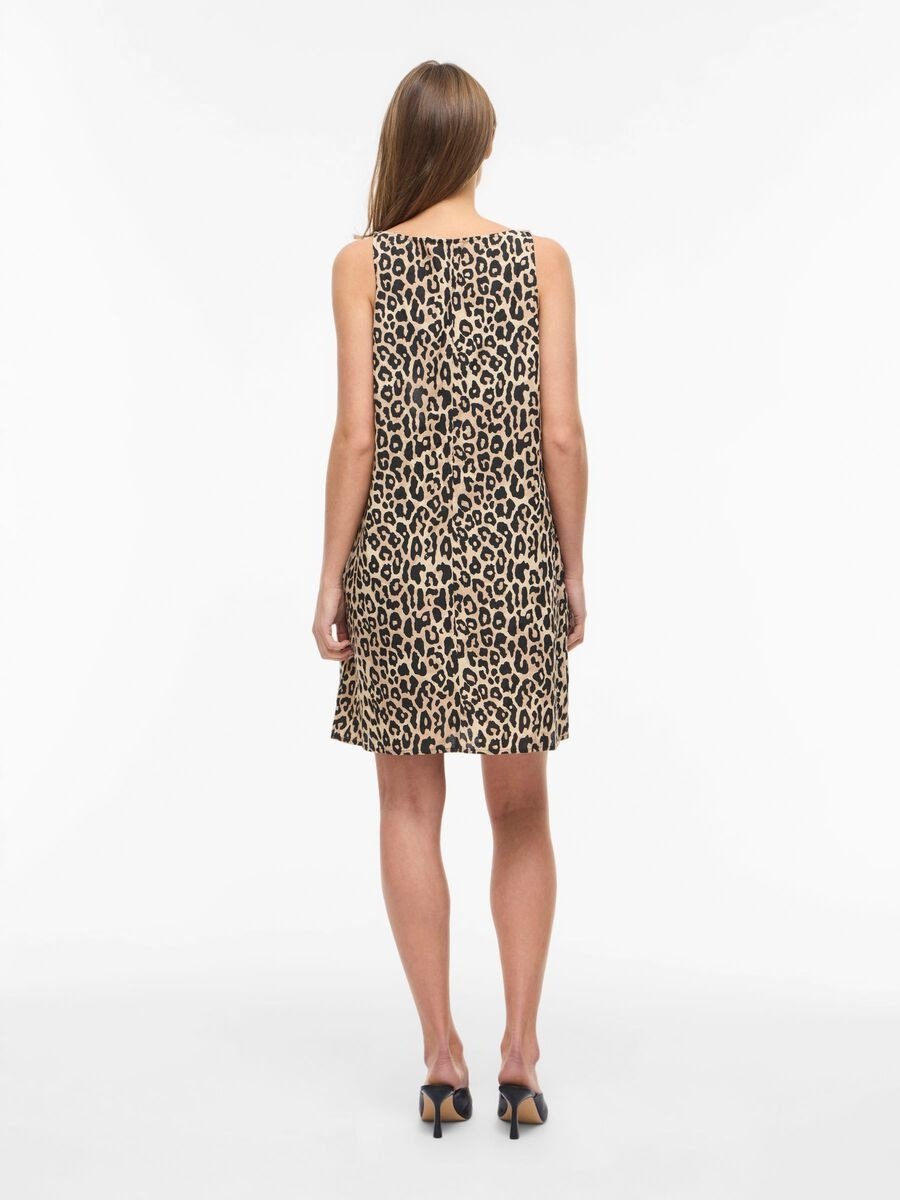 Short sleeveless leopard print dress.