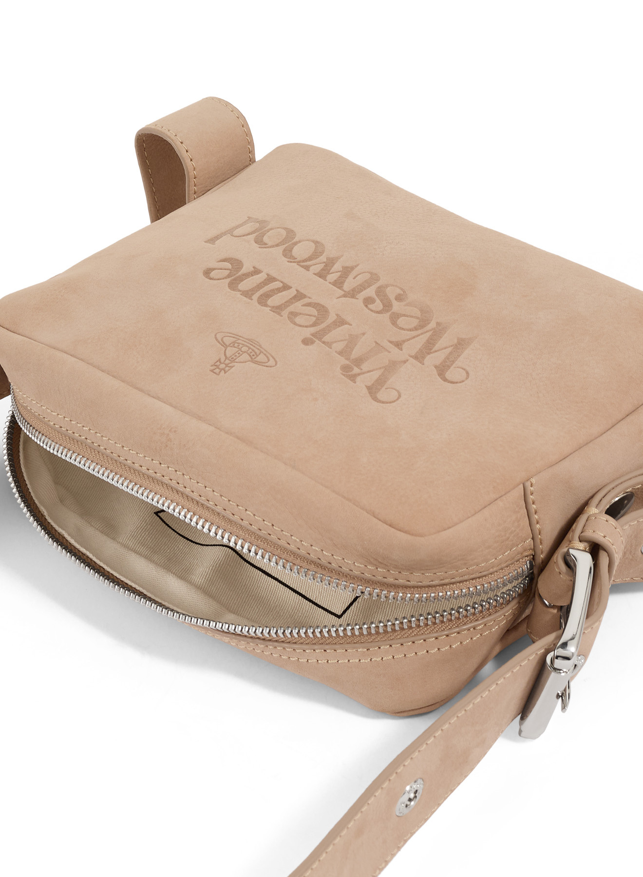 The main material contains 100% cow leather with a soft nubuk finish, sourced from a local tannery. The branding has been embossed on the front panel.