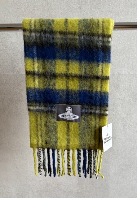 This season, Vivienne Westwood chunky knit scarf features a three-toned check wool & motif. Crafted with a chunky-knit finish, it’s detailed with tassel-trimmed edges and completed with the refreshed orb label on the front.