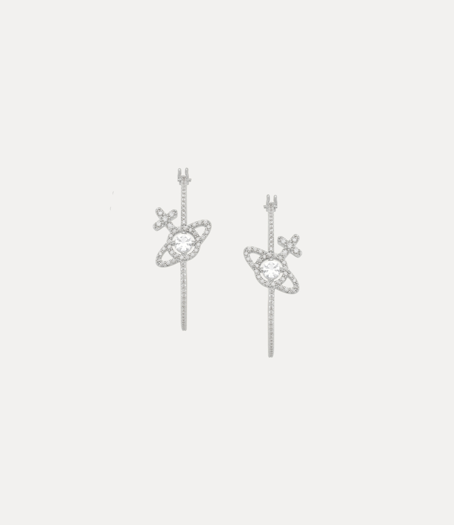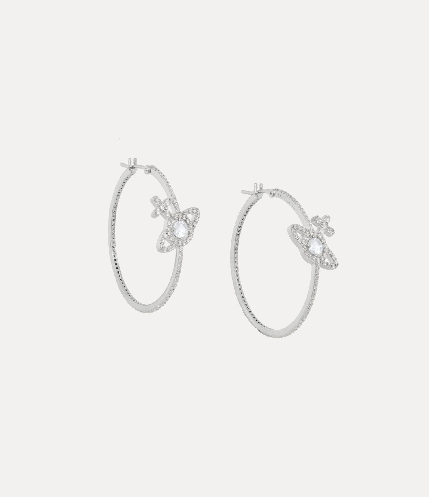 The Olympia Cubic Zirconia Hoop Earrings balance boldness with intricacy, combining cubic zirconia-encrusted hoops with the signature orb motif placed at the centre of the hoop.