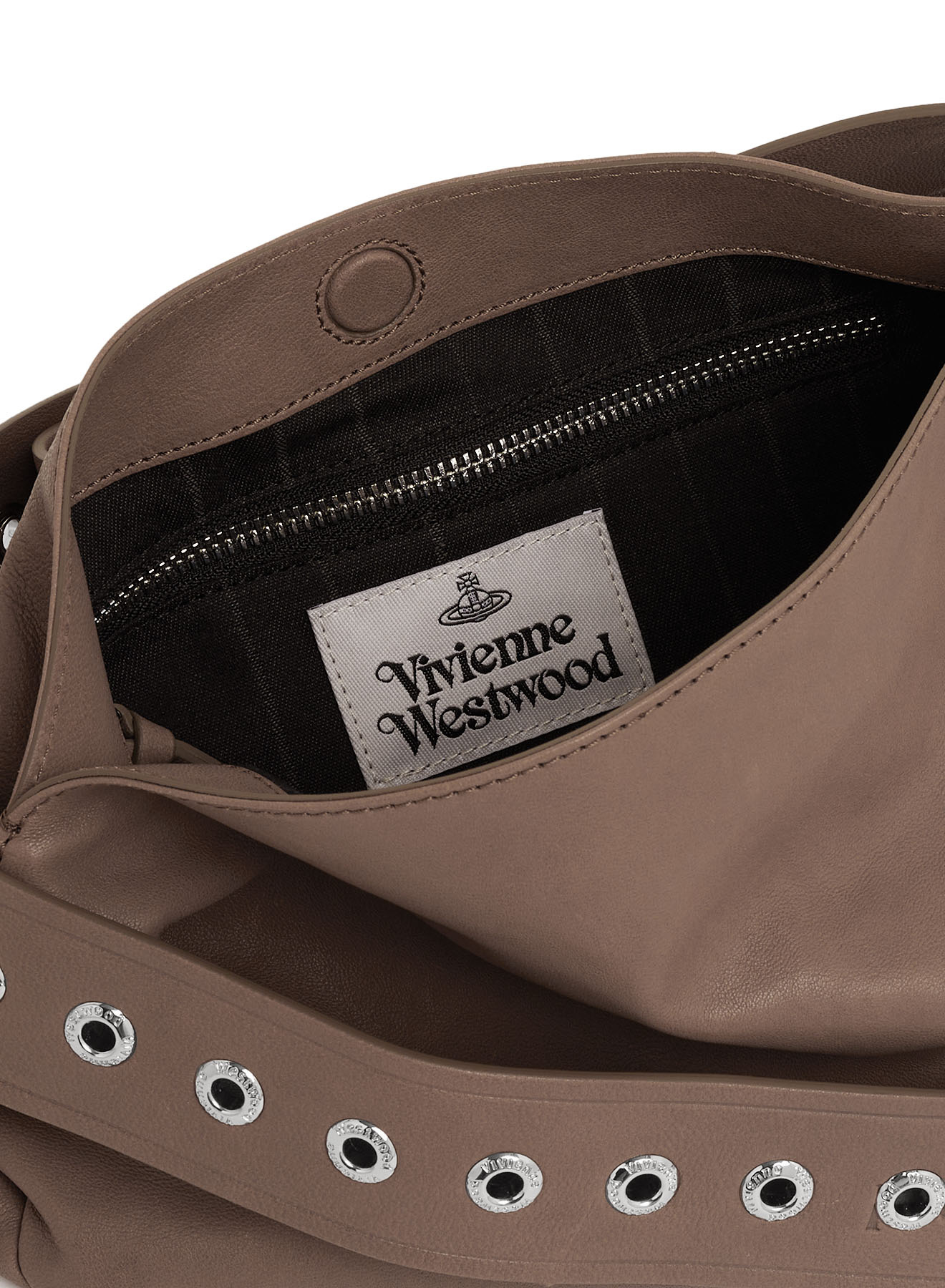 The Vivienne Westwood Maxime Small crossbody bag features a leather profile, complete with an engraved roller buckle closure and a row of silver-tone eyelets along the shoulder strap - recalling the design of the house’s iconic Alex belt.