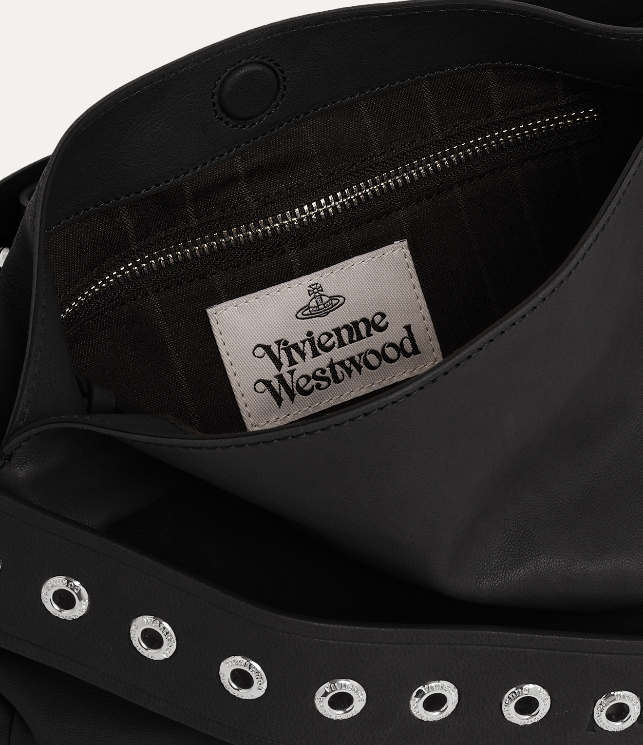 The Vivienne Westwood Maxime Small crossbody bag features a leather profile, complete with an engraved roller buckle closure and a row of silver-tone eyelets along the shoulder strap - recalling the design of the house’s iconic Alex belt.