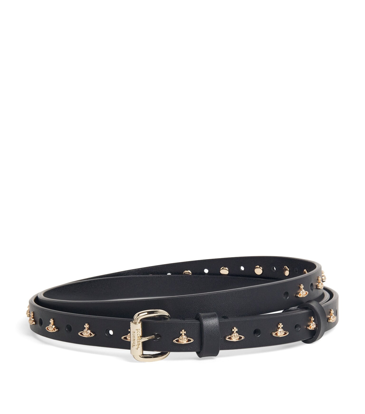Vivienne Westwood Mini Alex Charm leather belt, embellished with the house's signature orb studs along the strap.
